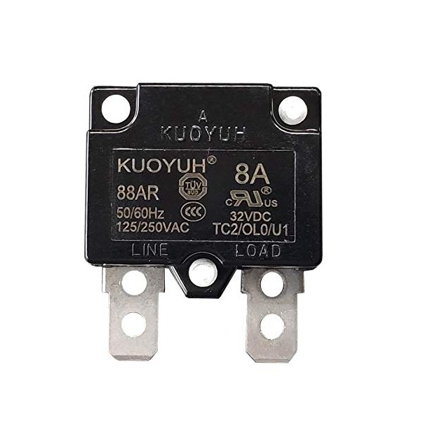 KUOYUH USA 8 Amp 125/250VAC 32/50VDC 88AR Series Automatic-Reset Thermal Overload Protector Circuit Breaker (1-Pack)