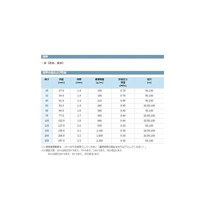 Kuraray Duct Hose for Drainage and Water Supply, Nominal Diameter 2.6 inches (65 mm), Cut in M Units
