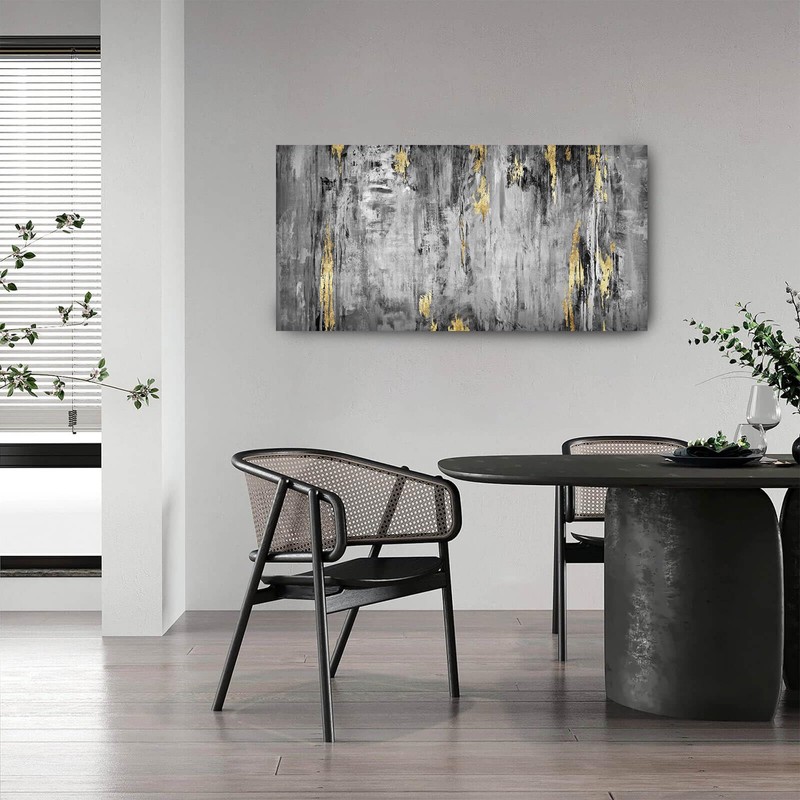 Kureful Grey and Gold Wall Decor Modern Abstract Picture Print 24"x48" Decorative Painting Photo Canvas Pictures for Bedroom Wall Decor Kitchen Prints