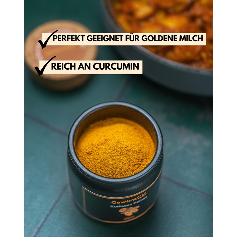 Frisch gemahlen entfaltet sie bei jeder Mahlzeit erdige Aromen und warme Nuancen. Nicht nur köstlich, sondern auch gesundheitsfördernd. Genießen Sie mit Gewürzlich Kurkuma ein Geschmackserlebnis der Extraklasse – perfekt für goldene Milch und kulinarische Kreationen! 🌿💛