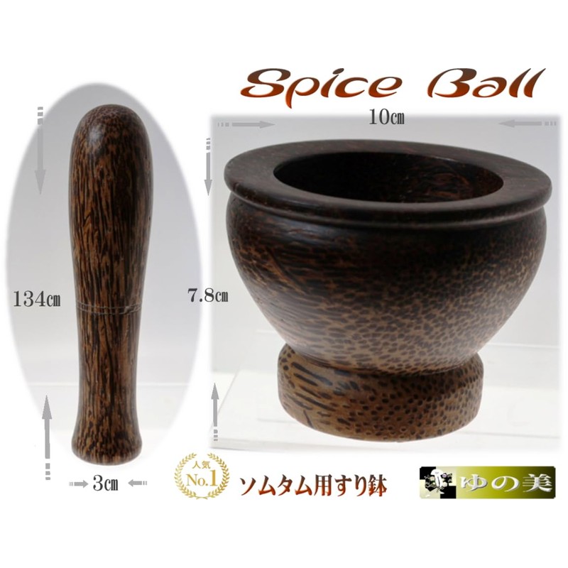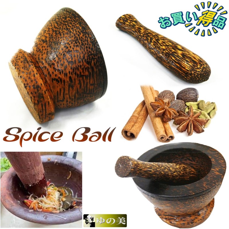 Kurokmai Thai Cooking Somtam Wooden Spice Ball Set Small Mortar Pestle Crock Somtam