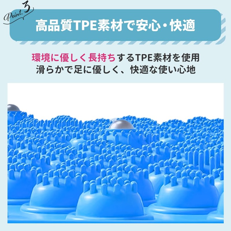 - 💡【素材にもこだわりました】 しっかりとした弾力のあるTPE素材を採用。耐久性と柔軟性を兼ね備えているので、毎日安心してお使いいただけます。裏面には滑り止め加工を施しており、フローリングやタイルの上でもズレにくい設計です。