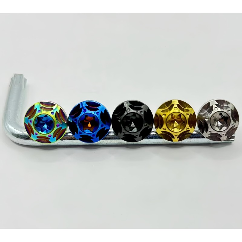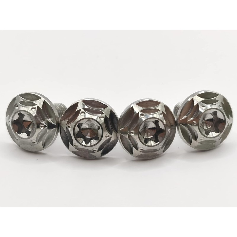 Kuroobaa Titanium Motorcycle License Plate Bolts Anti-theft Screws with Hex Lock Nuts Snowflake Design M6 x 15 Set of 2 (Silver)
