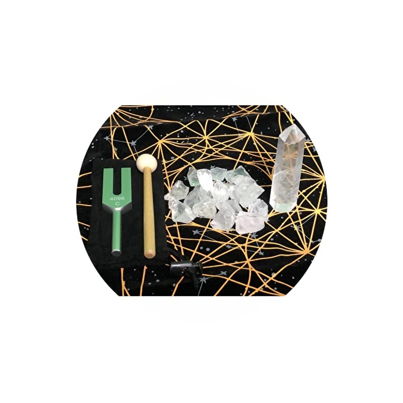 • Accessories: Aluminum tuner, mallet, crystal point, roughstone crystal approx. 3.5 oz (100 g)