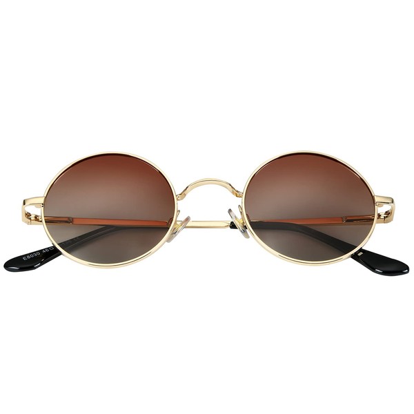 Kursan Red Circle Glasses/Small Round Polarized Sunglasses for Women Men Hippie Retro Circle Sun Glasses - 45MM (Gold/Double Brown)