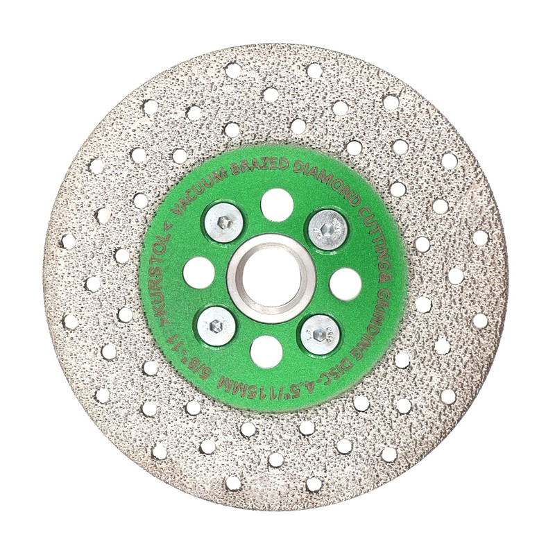 - 【Package Includes】1pc vacuum brazed 2 blades in 1 diamond wheel:Dia 4-1/2"/115mm,Thickness 2.5mm Diamond height 26mm,Thread 5/8-11,Diamond Grit 40/50;
