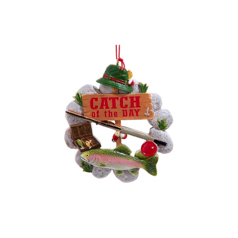 - Whimsical "Catch of the Day" fishing ornament: Celebrates the love of fishing with playful details and outdoor charm.