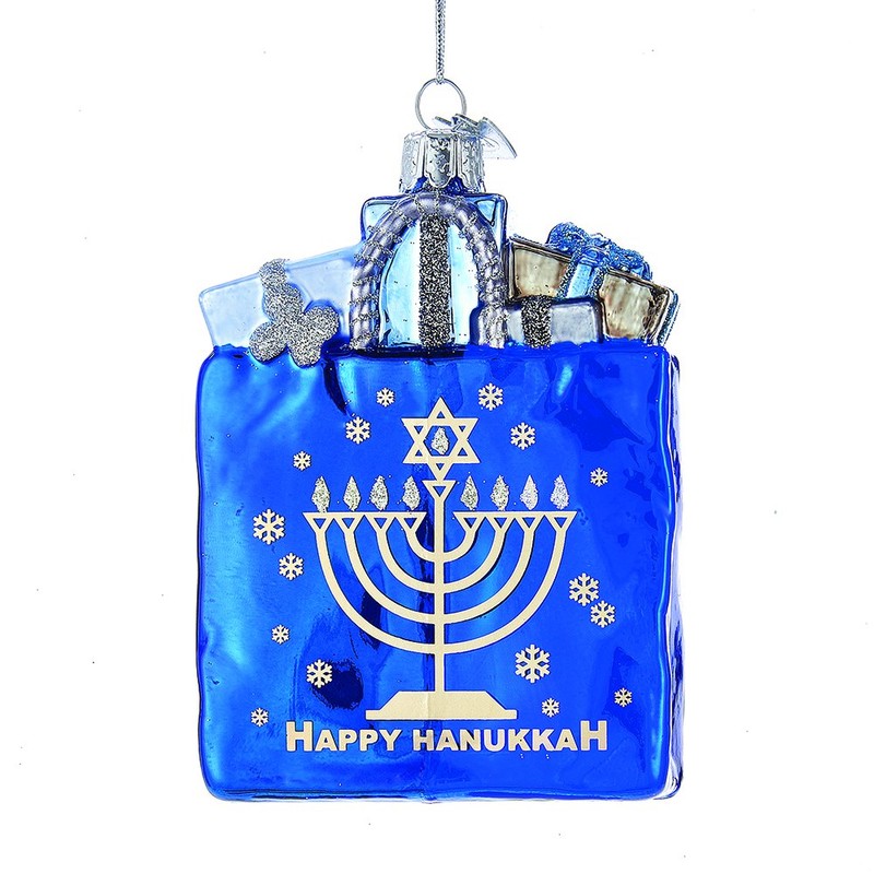 - Kurt Adler Noble Gems Happy Hanukkah Glass Gift Bag Ornament