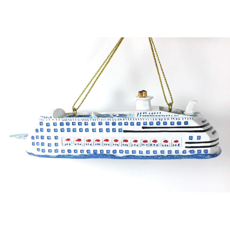 - This Kurt Adler Cruise Ship Ornament is a fun addition to any holiday decor or Christmas tree. This ornament features a large cruise ship sailing on sparkling blue water. Perfect for travelers