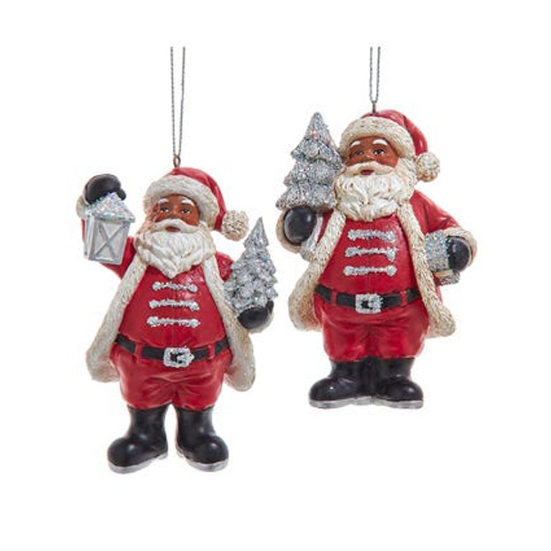 - Kurt Adler's African American Santa With Tree Ornaments celebrate the spirit of diversity and inclusivity in your holiday décor