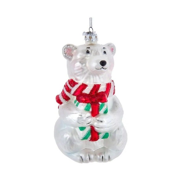 Kurt Adler Noble Gems Polar Bear w/Gift Glass Christmas Ornament-4.5" H