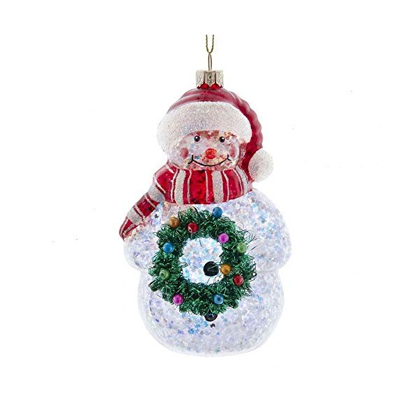 Kurt Adler T2725 Glittered Snowman with Red and Green Ornament, 5-inch High, Glass