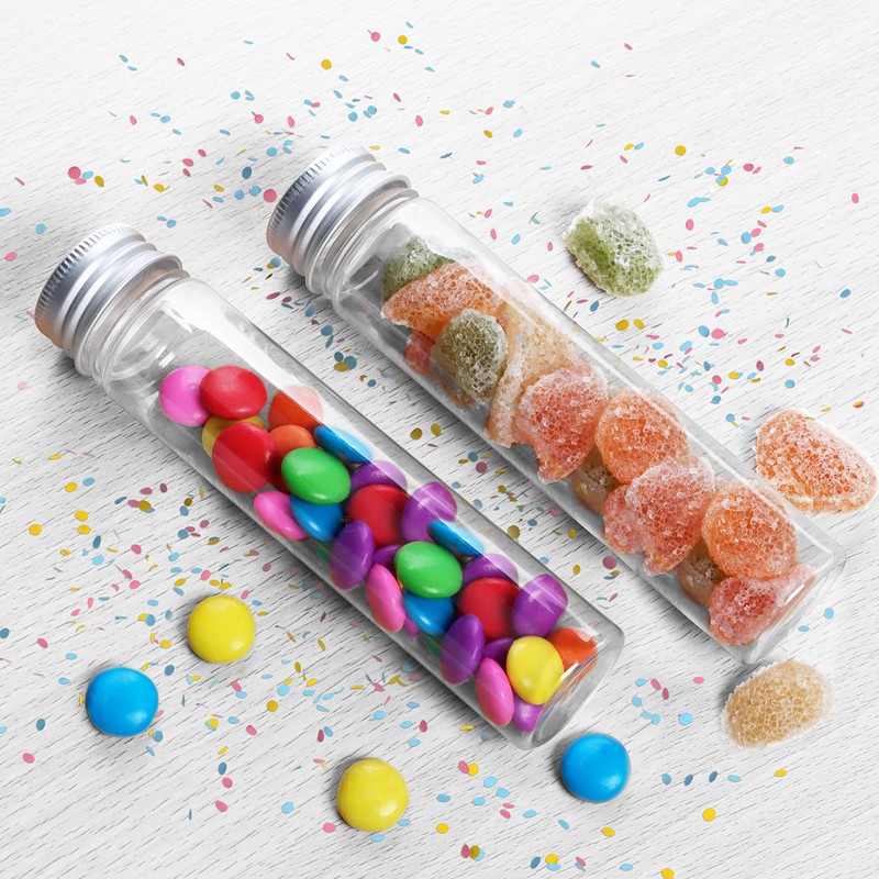 - SWEET AND SAVOURY TREATS: These test tubes are perfect for candy, gum balls, jelly beans, small chocolates, marshmallows, mints and sprinkles. Also, they can be used for storing herbs and spices. Use these for a science-themed birthday or Halloween party. Label them with tags or stickers and use them as favours for a wedding, bridal or baby shower. Make your own alcoholic gin shots or use them for ready-to-make hot chocolate gifts.