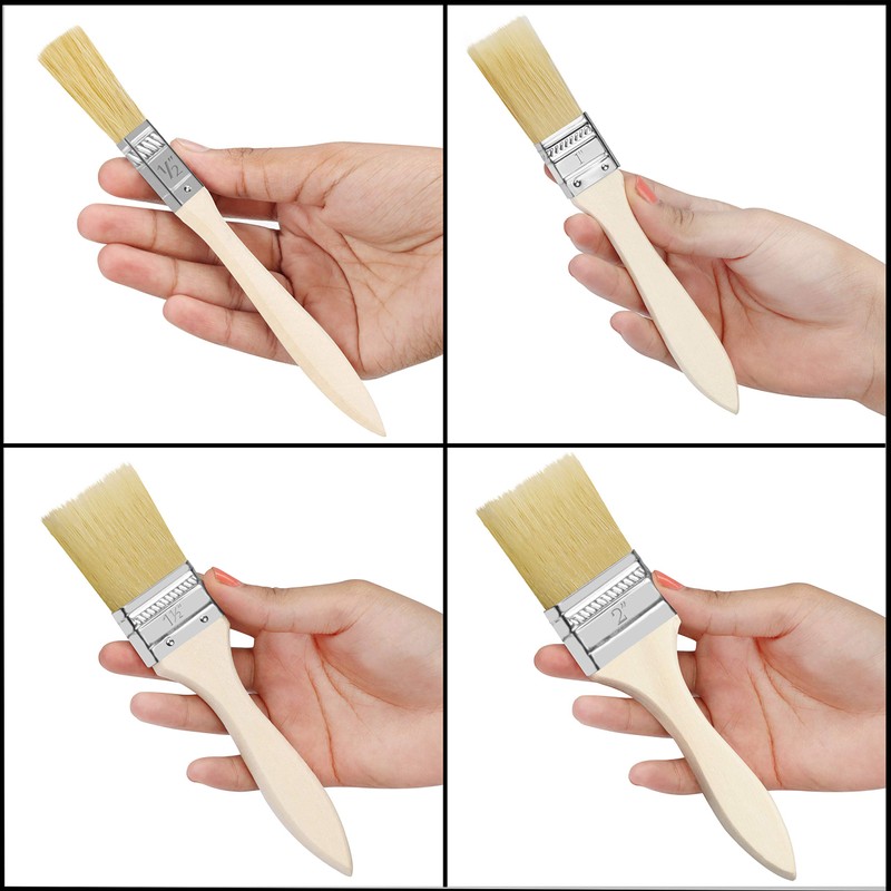 - WOODEN CHIP BRUSHES: Included in our set are 20 wooden paintbrushes. There are 4 assorted sizes in our set which are W5.08cm (2 inch), W3.81cm (1.5 inch), W2.54cm (1 inch) and W1.27cm (0.5 inch). The handles are made from poplar wood. As there are lots of brushes in this set, they can be used once and thrown away if you are using non-water based paints, glue or materials that are hard to clean. If you are using these for water-based paints, they can easily be washed out and used again.