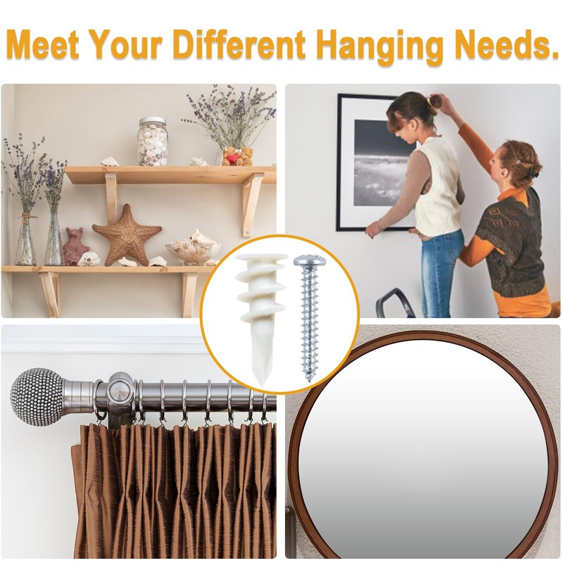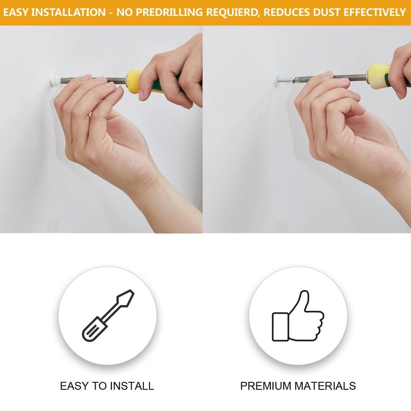 - EASY INSTALLATION WITH SCREWDRIVER C These threaded drywall anchors feature sharp, pointed shanks that can be screwed into the wall without a pre-drilled hole by using a screwdriver or a screw gun, which produces less dust. Once the anchor is in the wall, the screw is inserted, the anchor will wedge tightly against the drywall. These plastic drywall anchors can easily be removed can be reuse.