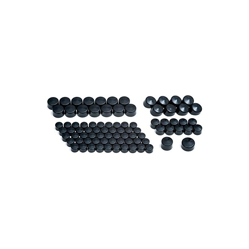 - Includes (49) gloss black Kool Kaps for 3/16" socket head cap screws, (10) gloss black Kool Kaps for 1/4" socket head cap screws, (8) gloss black Kool Kaps for 7/16" hex head cap screws, (14) gloss black Kool Kaps for 1/2" hex head cap screws, (1) gloss black Kool Kap for 5/16" socket head cap screw, (1) gloss black Kool Kap for 9/16" hex head cap screw or T30 torx head cap screw, and (1) tube of silicone adhesive