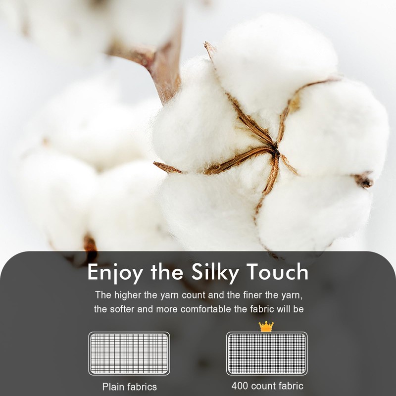 • LUXURY FABRIC - 400 count cotton blend fabric is soft and silky to the touch, tiny holes between the threads to keep dry and breathable, a cosy and quiet sleep allows you to recover quickly.