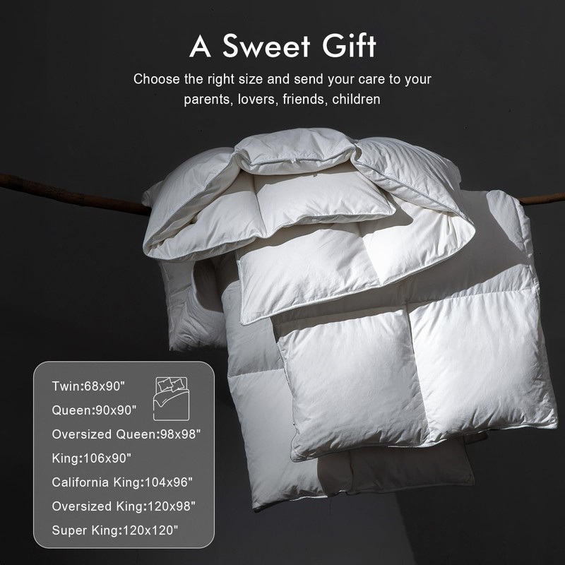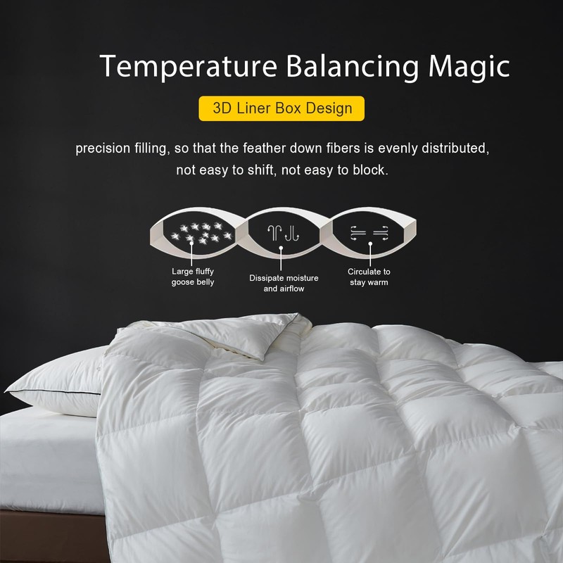 • ALL YEAR ROUND - Luxurious feather down fibers comforter provides warmth and constant temperature, soft and cozy for a new experience, fluffy and breathable for zero-pressure sleep, best for spring, summer, fall and winter