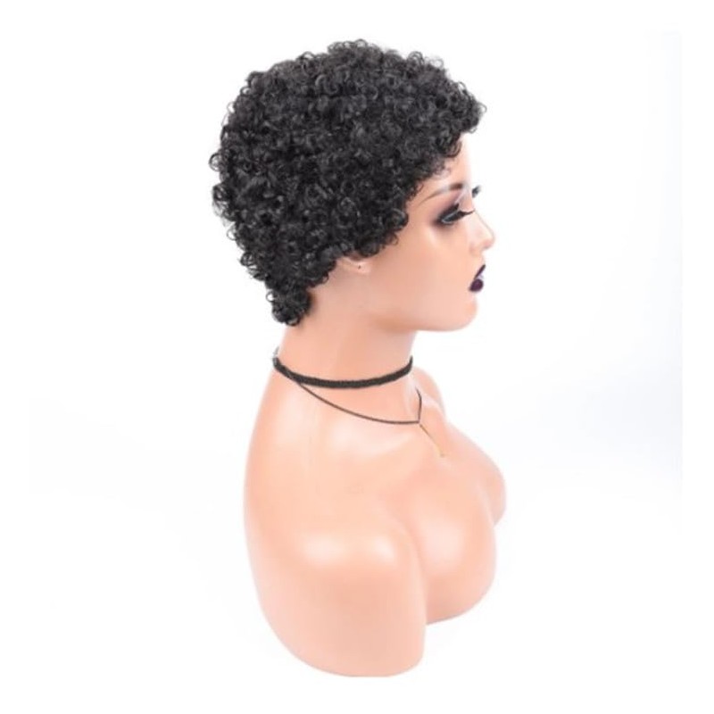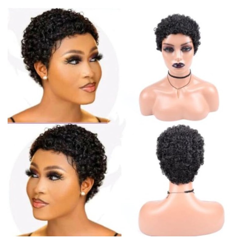 - 1:Natural and Stylish Look: This Afro Kinky Curly Human Hair Short Wig features a full and fluffy texture with a natural-looking pixie cut, offering a chic and trendy style that enhances your overall appearance. The kinky curly pattern mimics natural Afro hair, providing a seamless and realistic look.