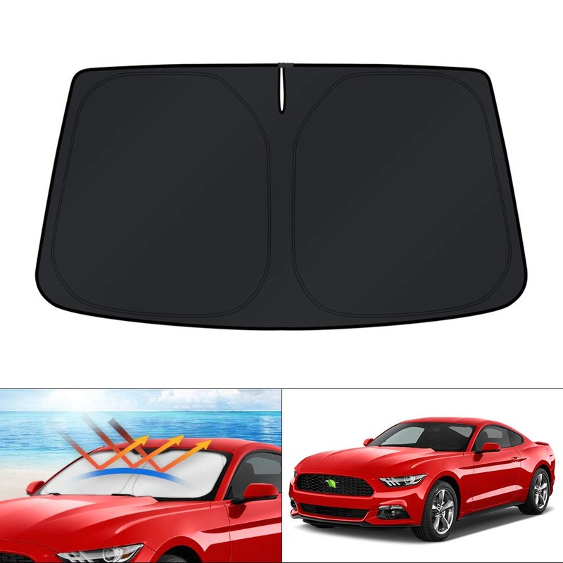KUST - Parasol para parabrisas de ajuste personalizado para Ford Mustang 2015-2023 (no para Ford Mustang Mach-E) parasol plegable que bloquea los rayos UV y mantiene tu coche fresco