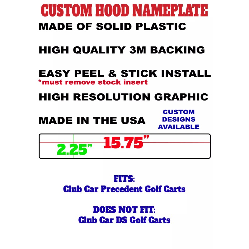 KUSTOM CYCLE PARTS American Flag Club Car Golf Cart Front Name Plate. Fits Club Car Precedent Carts