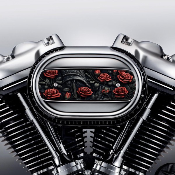 Kustom Cycle Parts Leather and Red Roses Air Cleaner Cover Insert. Replaces Stock Harley Davidson M8 / 114 Air Insert.