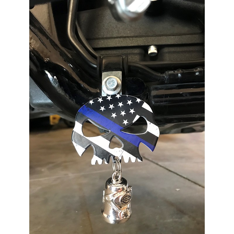 Kustom Cycle Parts Universal Thin Blue Line Skull Bell Hanger - Bolt and Ring Included (Bell Not Included). Fits all Harley Davidson Motorcycles & More! Proudly MADE IN THE USA!