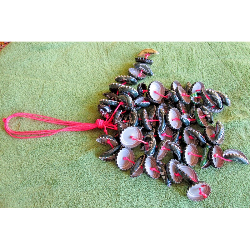 one new Bottle Cap Rattle Shaker Sound Effect, lush noisey metallic sound, new, handmade, each varies slightly in appearance/bottle cap color/string color. All sales are final, I do not accept returns.