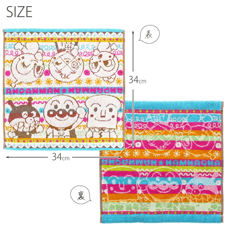 Kusubashi Mon Ori, Hand Towel, Guest Towel, Jacquard Towel, Anpanman Shimajaran, Multicolor, Approx. 13.4 x 13.4 inches (34 x 34 cm)