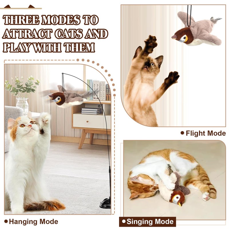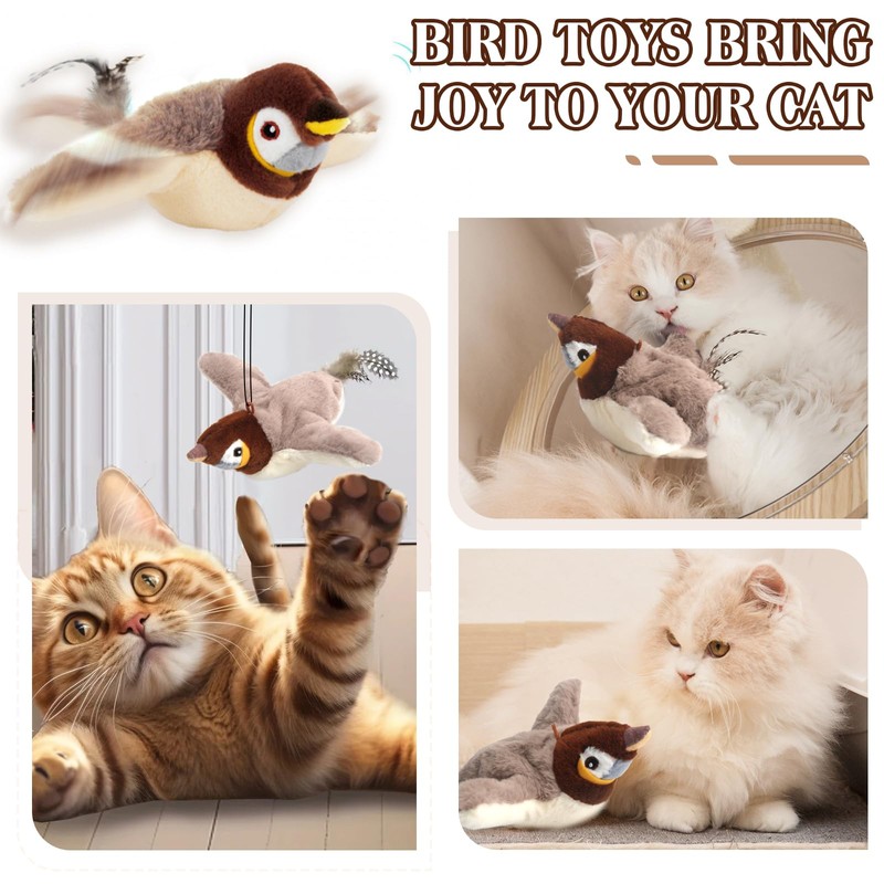 The Flapping Bird Cat Toy has 3 different movement frequencies and realistic bird sounds to provide kittens with a more realistic hunting experience!
