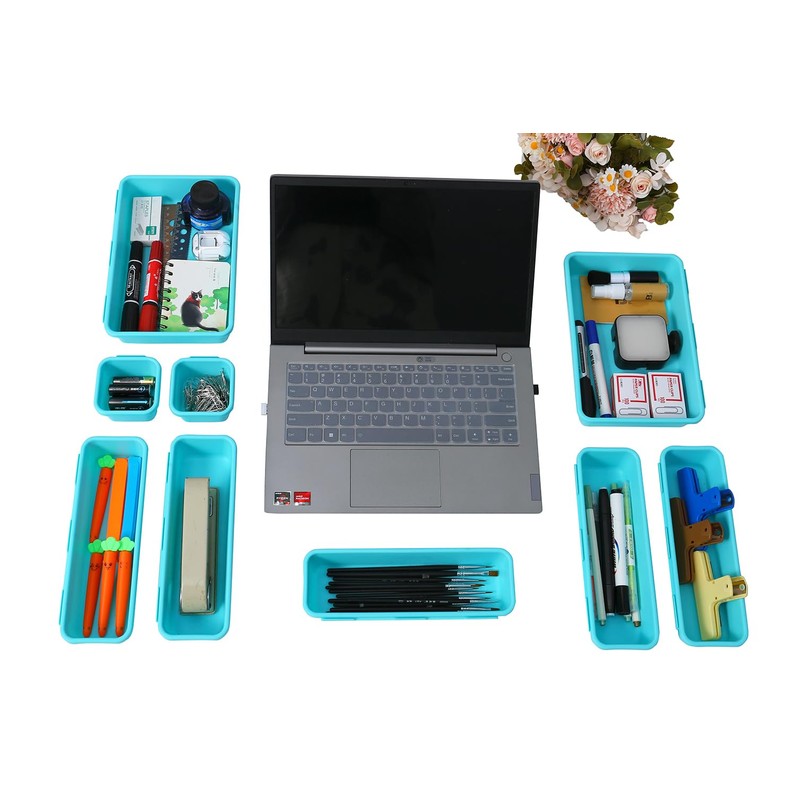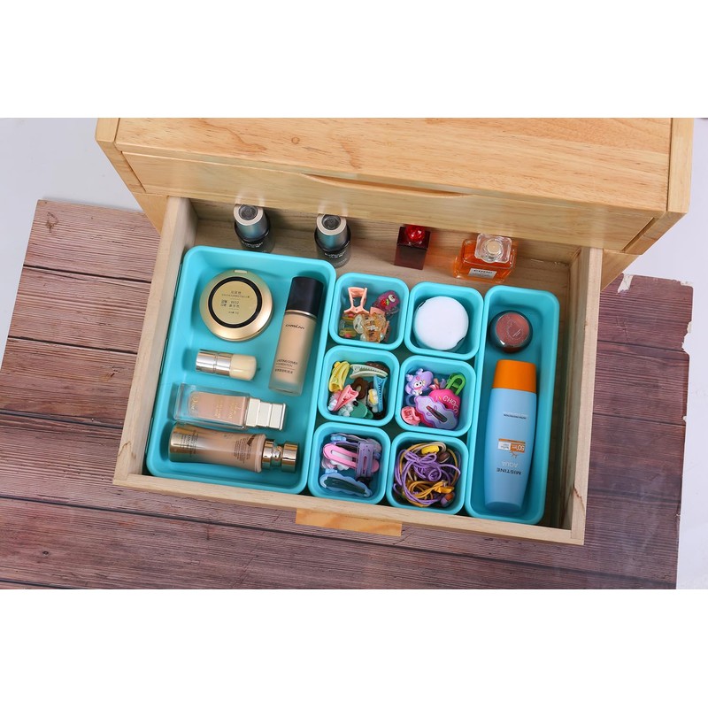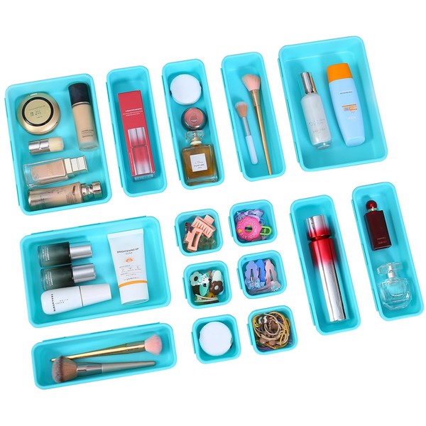 Kutesna 15 PCS Interlocking Desk Drawer Organizer Separator for Office,Bathroom,Kitchen,Makeup(Blue&Green)