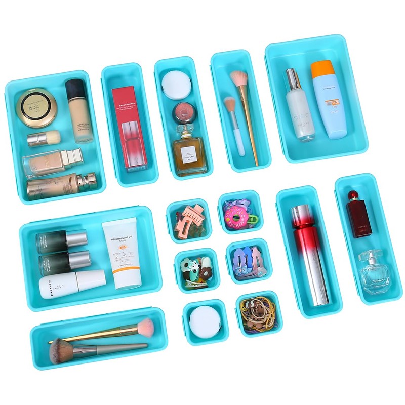 - 【MULTI-PURPOSE STORAGE】15 Pcs customizable drawer bins include 3 large,6 medium and 6 small trays.It’s easy to find a configuration that works for your drawers or desktop.You could use them in bathroom,office,dorm room and more.