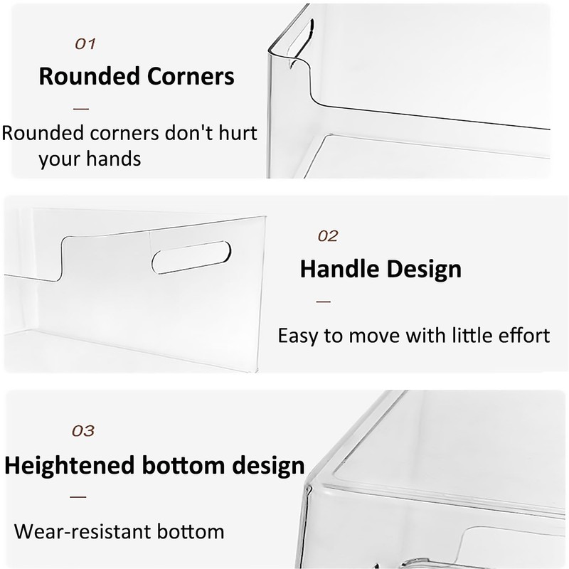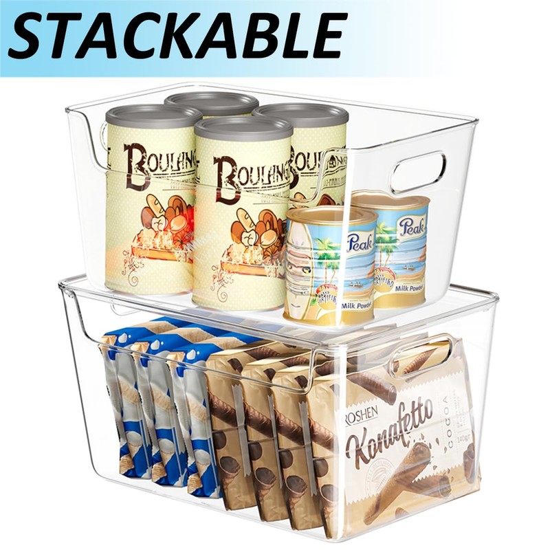 - MAKE STORAGE EASIER - These clear storage bins are versatile and fit easily into shelves and cabinets in your refrigerator, freezer, and pantry, making your storage simpler and helping to keep your refrigerator, freezer, and pantry neat and organized.