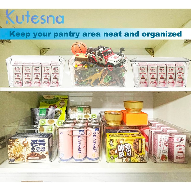 Kutesna 6 PCS Clear Pantry Storage Bins with Lids, 2 Sizes (3XL+3L)Stackable Plastic Storage Containers with Handle, BPA Free, Perfect for Bathroom,Cabinet,Cupboard,Kitchen,Fridge,Closet Organization