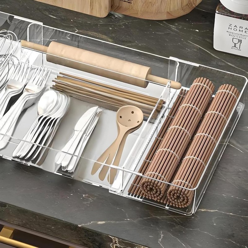 - 【Adjustable Size】 Featuring an adjustable width range of 10.63-17.13 inches, this kitchen drawer organizer is designed to be the ultimate storage solution. Its customizable design allows for adjustments in both length and width, ensuring a perfect fit for drawers of all sizes and shapes.