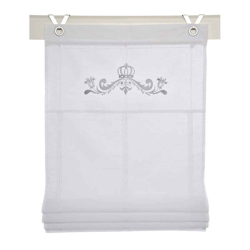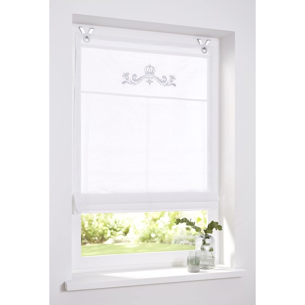 - White Roman blind with elegant and high-quality embroidery crown in shabby / vintage look. Hook hanger for easy installation of the curtain without drilling, easy to install and use.