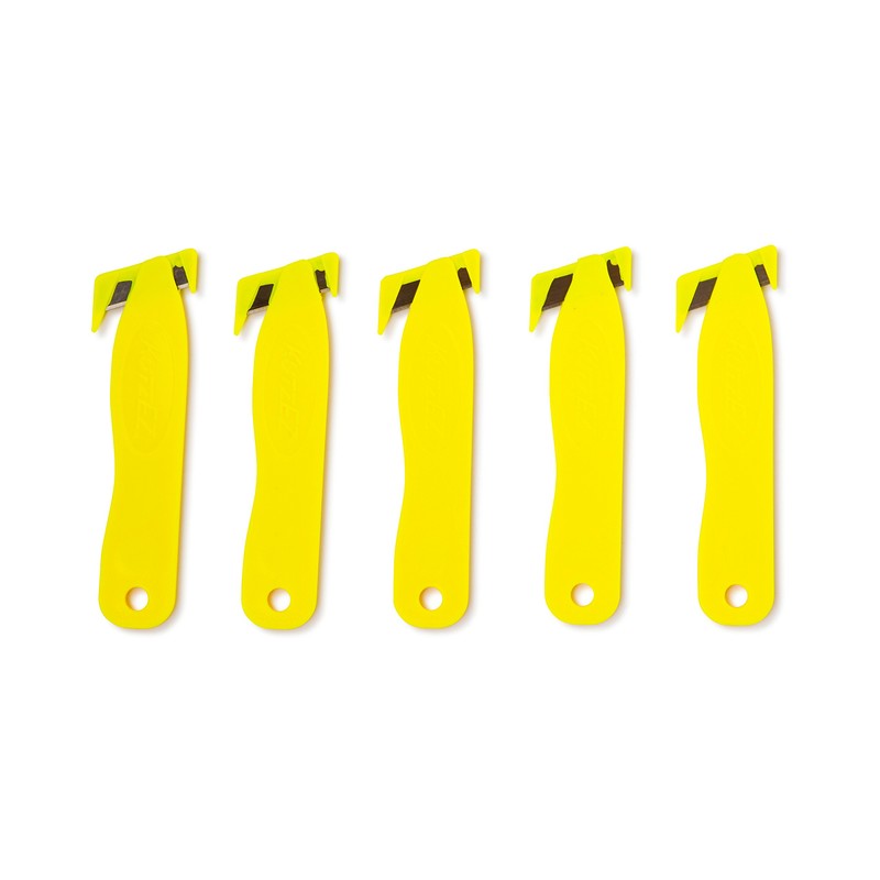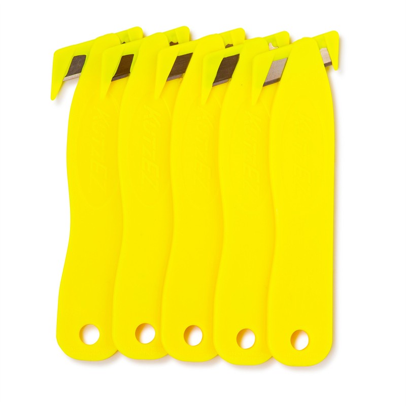 - AVAILABLE IN FIVE VIBRANT COLORS – These safety knives are available in five vibrant colors. Choose between blue, green, pink, purple, or yellow. When you order a set of five, you will receive five knives of the same color. These vibrant colors make the knives stand out. When you need one, it will be easy to find, even if it’s buried in a pile of other tools inside a toolbox.