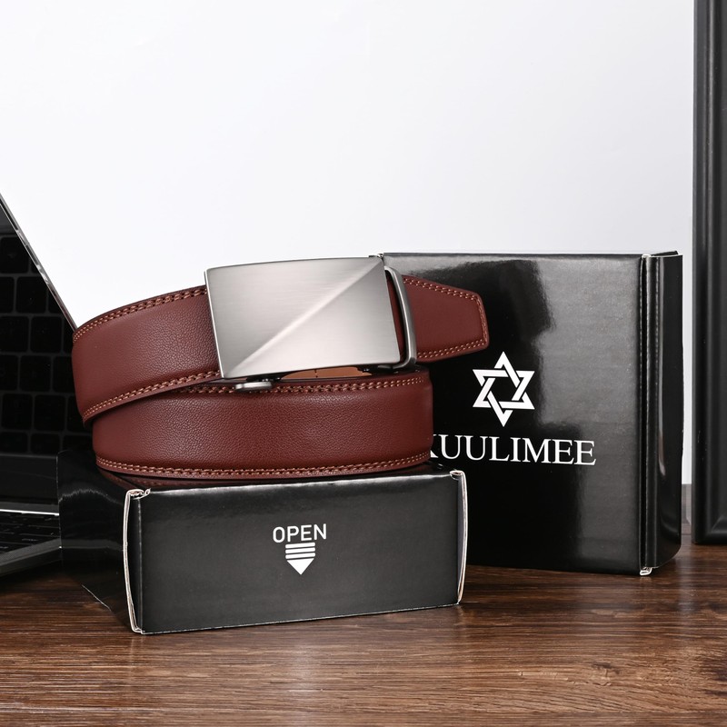 • KUULIMEE Belt men's automatic buckle belt leather ratchet belt for men width 35 mm suitable for suit trousers and jeans.