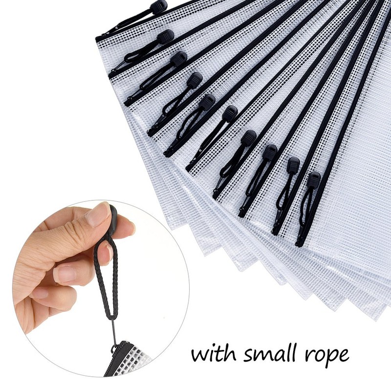 KUUQA Pack of 10 A4 Document Bag Waterproof Mesh Zipper Pockets Zip File Pockets Document Wallet Folder for Offices Supplies Cosmetics Storage