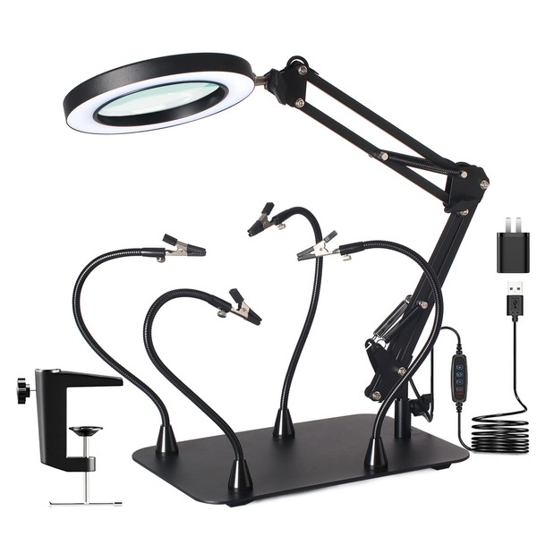 - 【10X HD Magnification】Desk magnifying glass with light presents you with 10X high-power magnification and real colors clearly without distortion. It's perfect for any activity that needs precision, like soldering, model & jewelry making, needle-point sewing, diamond painting.