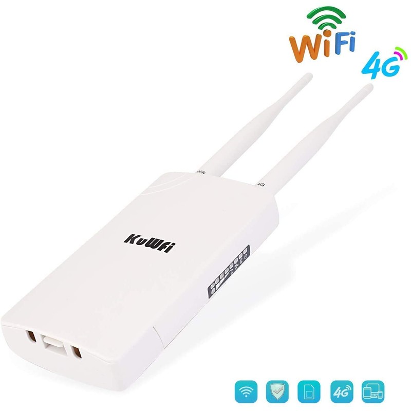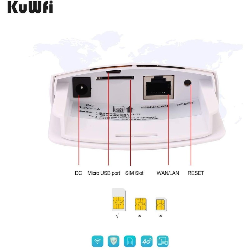 KuWFi Waterproof Outdoor 4G LTE CPE SIM Card WiFi Router 150Mbps CAT4 SIM LTE Routers Work with IP Camera or Outside WiFi Coverage with 2pcs Antenna Only Work with SIM Card Mode Not for USA