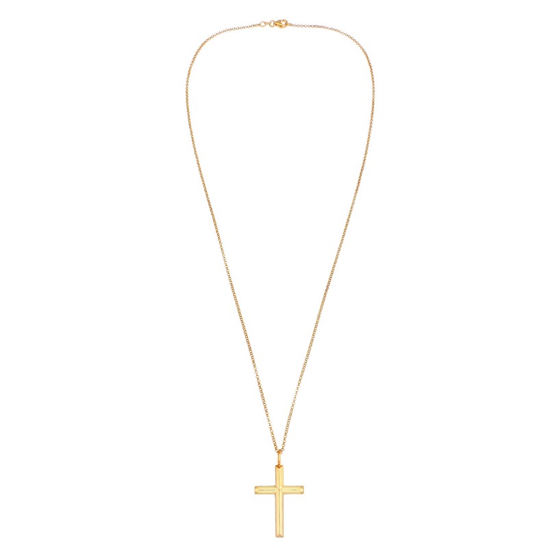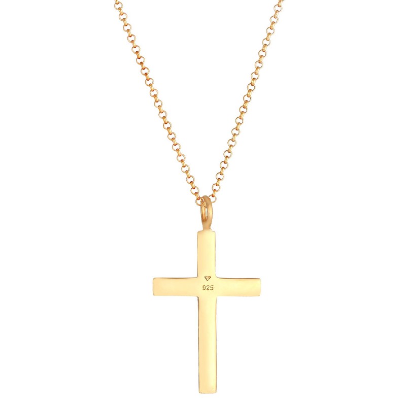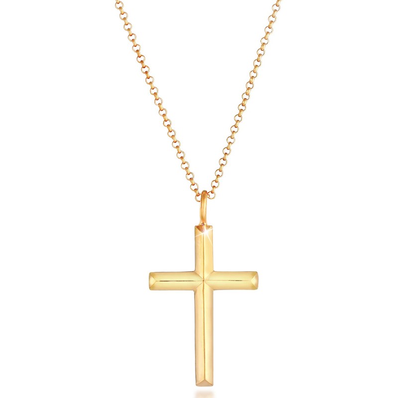 Kuzzoi Exclusive Men's Necklace Shiny Gold-Plated with Cross Pendant (30 mm) in Basic Style, Solid Chain for Men and Boyfriend with Religious Cross Made of 925 Sterling Silver, Length 60 cm, one size,