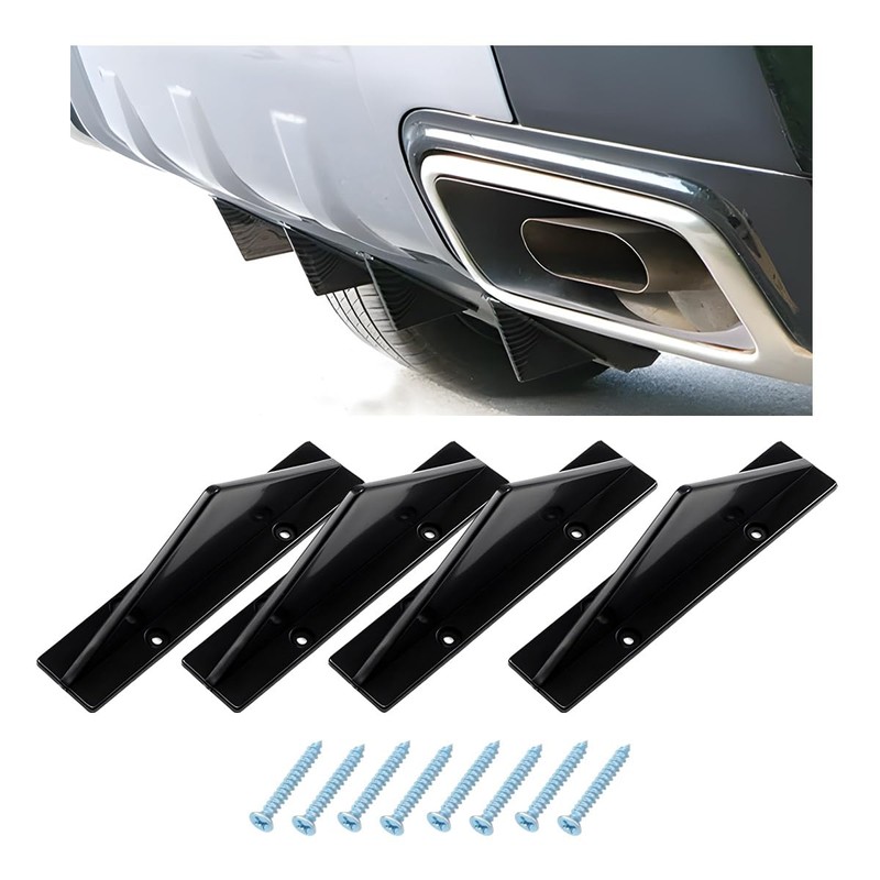 KVAEY 4 PCS Car Rear Lower Bumper Wing Lip Diffuser, Shark Fin Car Spoiler Wing Rear Bumper Decoration, Universal Rear Bumper Lip Splitter for Cars Trucks SUVs, Car Accessories (Straight Black)