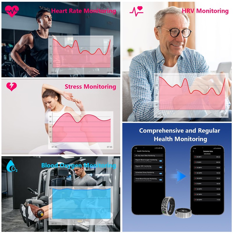 - Advanced Health MonitoringEquipped with upgraded 4.0 sensors, the KVKVMO Fitness Ring can measure heart rate, blood oxygen, and stress levelseither manually or automatically every 30C60 minutes when worn. Unlike other smart rings, it automatically saves your previous monitoring data, allowing you to better monitor your health and make informed lifestyle improvements, and achieve comprehensive wellness management