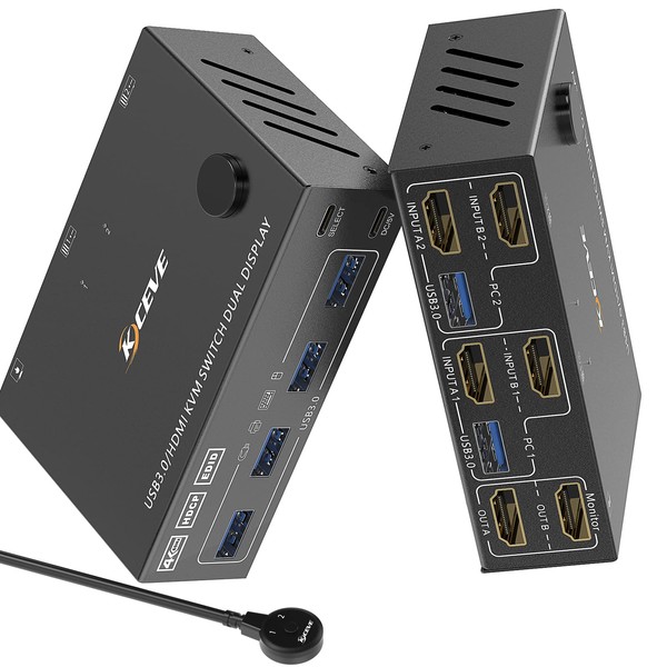 - 【Dual Monitor KVM USB 3.0 Switch】This Dual Monitor HDMI KVM switch can control 2 computers to share 2 monitors by 1 set of USB keyboard & mouse. When in copy mode the main screen can be copied to the secondary screen. When in extend mode, the window from main screen can be dragged to second screen.