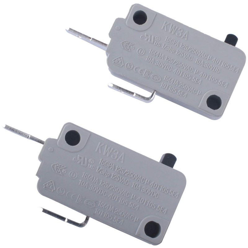 • ''' PACKAGE QUANTITY - 2 pc KW3A microwave door switch(normally open + normally close). This is the non-original aftermarket parts. If you have questions, pls feel free to contact us, we will deal with it asap.#||# PRODUCT INSTRUCTION - 16GPA 125/250VAC 40T105 5E4, 1/3HP 125VAC 10A 30VDC, 16(4)A 125/250VAC 40T105 5E4, 10A 30VDC 40T105 5E4, 16(4)A 250VAC 10T105 5E4#||# WIDE RANGE OF APPLICATION - Widely used in home appliance, electronic equipment, automatic machine, communication equipment, car electron, apparatus and instrument, electric motion tool etc.#||# HIGH QUALITY - Made of thermosetting or thermoplastic materials, flame retardant, high temperature resistant.#||# SAFE AND RELIABLE - Our Product has passed relevant certification : UL,CUL,VDE,SEMKO,DEMKO,FIMKO,CE,CQC,TUV,EK'''