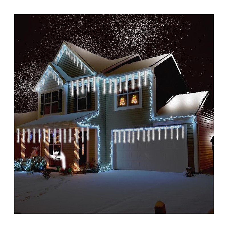 Unique Lighting in Your Christmas Display(Lámparas decorativas de navidad únicas)! These icicles lights are all powered by its own IC chip and falls at random to make a pretty display, act like a meteor shower or falling snow crosses the sky. They add a nice touch to your outdoor decorations, you can hung them from a multi-branched tree in front yard, and the more you hang, the more spectacular they look. It has a wide range of decorations, they are great Christmas decorations for tree, window, yard and party. You can also use them as Christmas tree lights, outdoor Christmas lights for house, they will be very impressive and cool to watch. I'm sure you'll get compliments from your neighbors if you decorate your Christmas with them. And we recommend that you pair our 24-tube ones with our 8-tube(B088H8Q8KZ) ones to save money and flexibility in decorating.