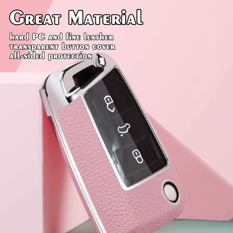 - High-quality material: combined with a hard PC and a fine leather key cover, a transparent button cover, protects your car key from scratches and damage and provides all-round protection