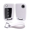 Kwak's Car Key Case for VW Compatible with Volkswagen Skoda Seat Golf 7 Tiguan-L Lamando Octavia Folding Car Key PC Key Case with Key Fob (White)