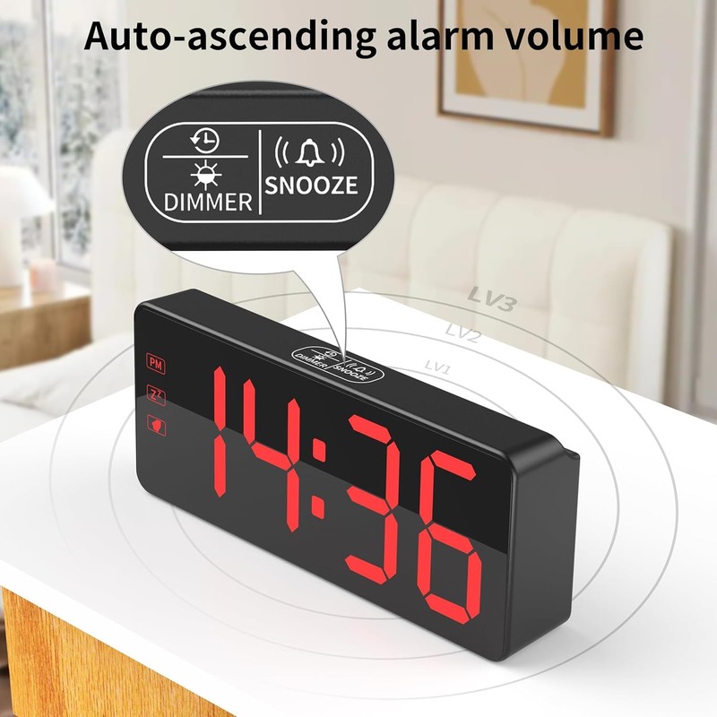 - Snooze Funtion Like a Pro: We get it - mornings can be tough. That’s why this clock features a super-sized snooze button for easy access, even with your eyes closed. Hit snooze and enjoy 7 more minutes of blissful sleep. The alarm tone gradually increases in volume and shuts off after 2 minutes, so you’ll never oversleep again.